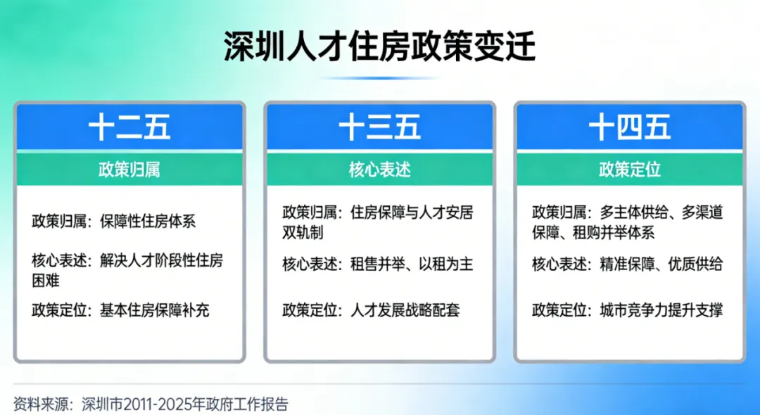 深圳市两会政府工作报告是观察地方施政重点的权威窗口。其中关于人才住房的表述变迁,清晰地勾勒出这项政策在城市战略棋盘上地位不断攀升的轨迹。