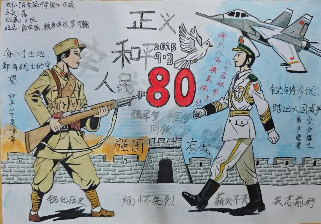 今年是抗战胜利80周年,我们开展了诸如观看阅兵仪式等一些列活动,清明进行祭扫活动缅怀先烈,八月进行国防教育系列活动,十月开展爱国荣校系列活动,强化理想信念教育,培养德智体美劳全面发展的社会主义建设者和接班人。