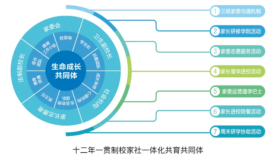 2025年,学校持续深化“校家社教联体”建设,初步构建起十二年一贯制校家社一体化共育体系。通过完善三级家委会机制,并依据《协同育人章程》系统规范共育路径,推动协同育人制度化、常态化。