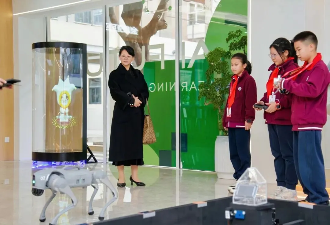 随后是深度交流环节,两校学子通过多重互动缔结友谊:同学们共同体验了AI科技课程,在实践中感受未来教育的创新模样;在趣味体育活动中协作竞技,真正体会到了“友谊第一,比赛第二”的体育精神;华附和龙外的同学们交换了新年祝福的信件,让情感在笔墨间温暖流淌;临别,华附研团的同学们还获赠了龙外校园吉祥物,成为此行的美好纪念与友谊象征。这些丰富活动,让跨校交流成为培育综合素养的生动课堂。