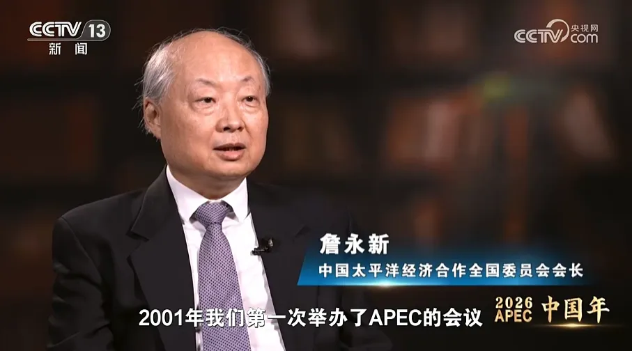 中国太平洋经济合作全国委员会会长 詹永新:2001年我们第一次举办了APEC的会议,那一年恰恰也是我们加入世界贸易组织WTO的那一年。实际上很多人就看着中国,你是最大的发展中经济体,你怎么办,所以实际上中国以自己的开放的姿态,通过上海共识这样的一个声明,推动了地区一体化这样的进程。实际上就是倡导了共同的发展,共同的繁荣。那么在这些年的过程中,中国也不光是倡导了这些,实践上也是这么做的。