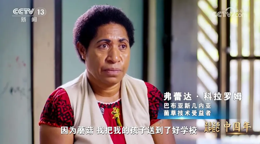 巴布亚新几内亚菌草技术受益者 弗蕾达·科拉罗姆:因为蘑菇,我把我的孩子送到了好学校,我买了两辆车,我还用蘑菇基金建了一些房子。我觉得非常棒,这项技术可以改变这个世界。