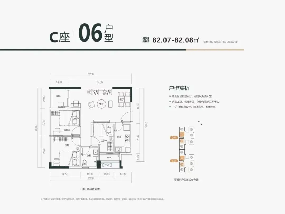 C03户型:约86㎡全能大三房,南北通透+ 全明格局