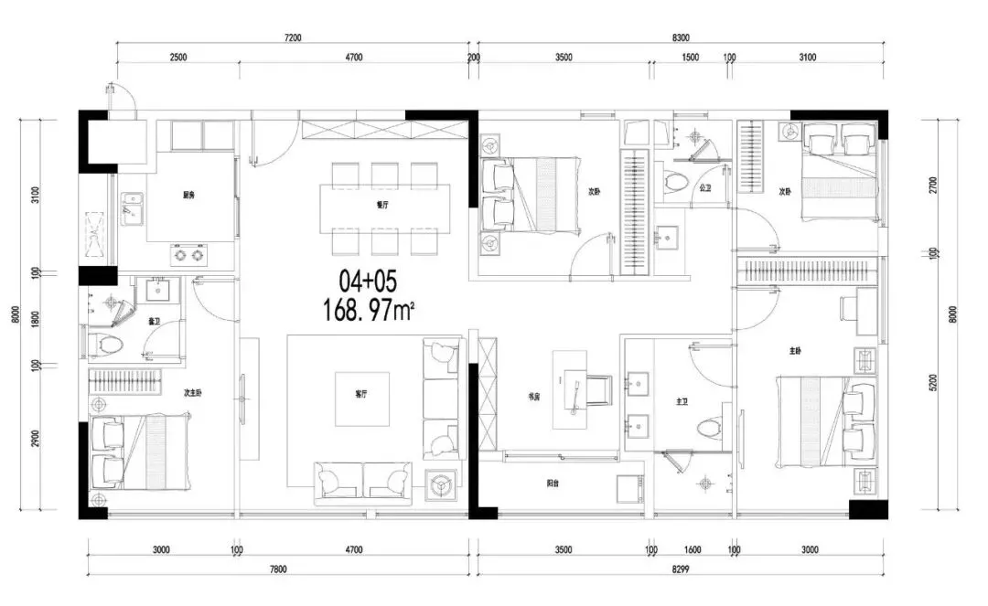 C04+05户型:约169㎡阔绰舒居4房,高处视野私享无遮景致