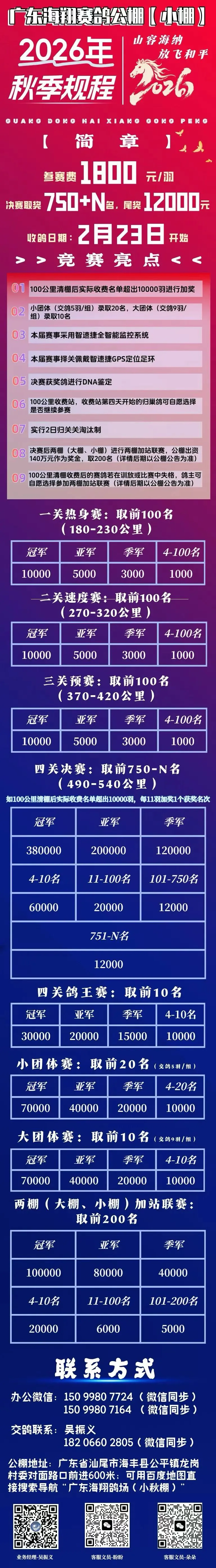 8.决赛后两棚(大棚、小棚)进行两棚加站联赛,公棚出资140万元作为奖金,取200名(详情后期以公棚公告为准)