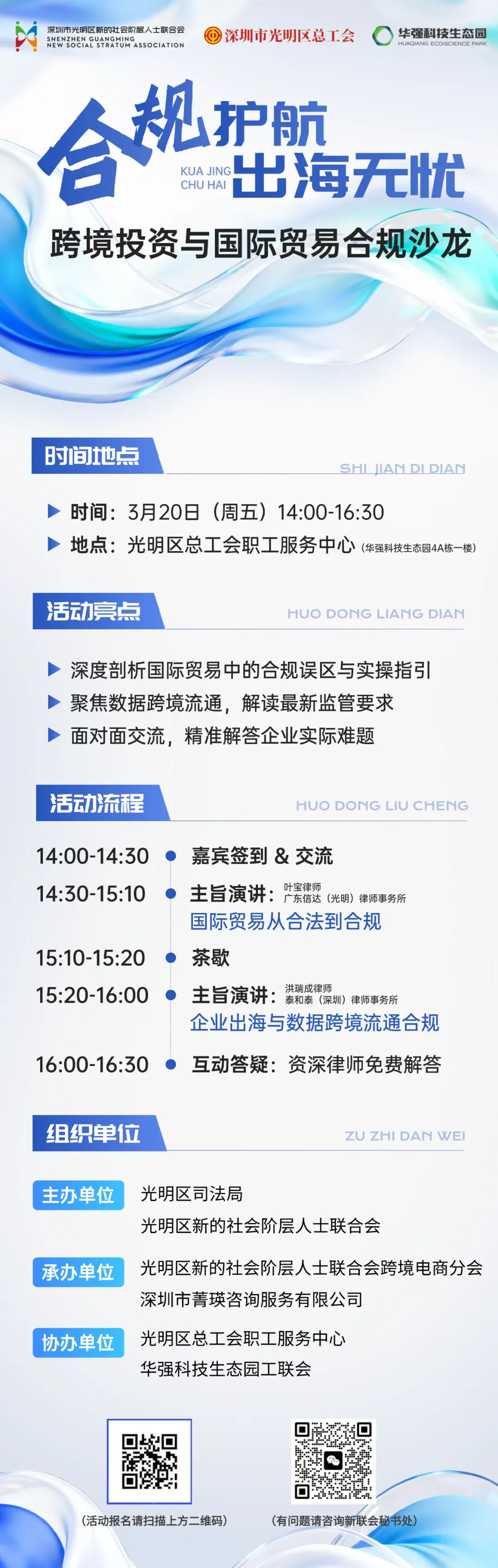 时间:3月20日(周五)14:00-16:30地点:光明区总工会职工服务中心(华强科技生态园4A栋一楼)
