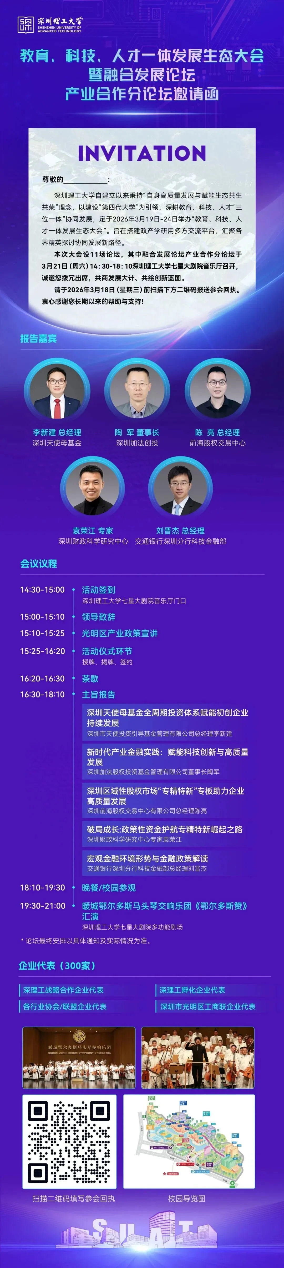 时间: 3月21日(周六)14:30-18:10地点:深圳理工大学七星大剧院音乐厅