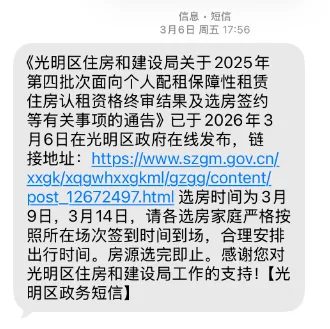 言归正传,保租房每年都会有好多批,刚好我在光明区,中奖概率比龙华、南山那些繁华区高很多,我前后一共申请了3次,最近一次是2026年2月份提交的申请中的。