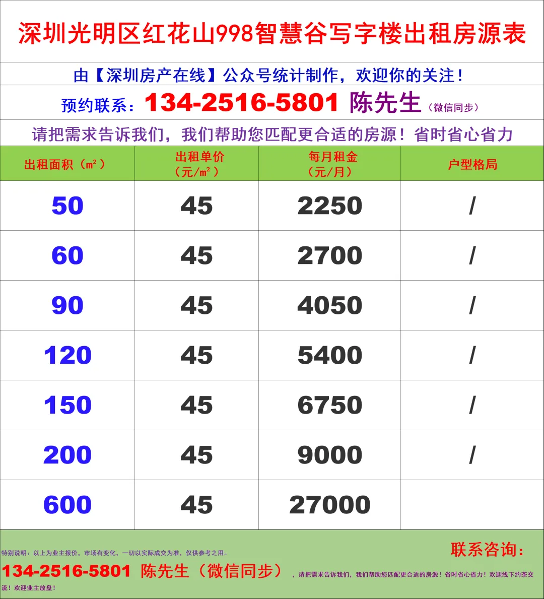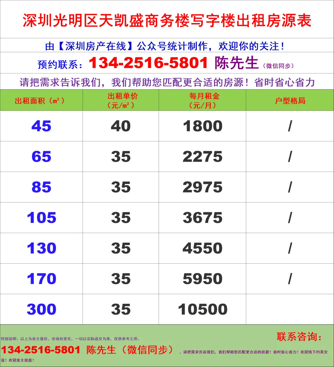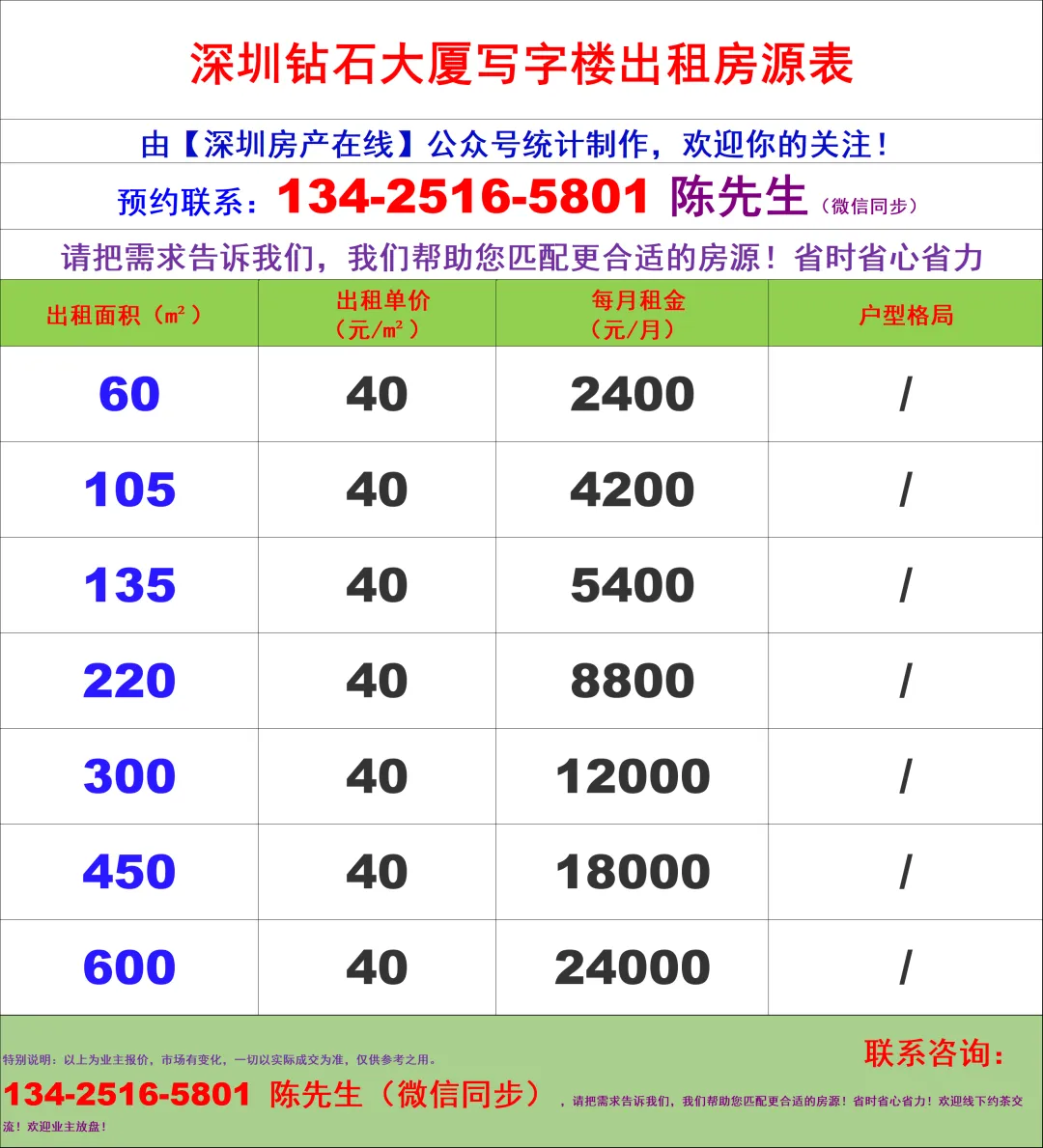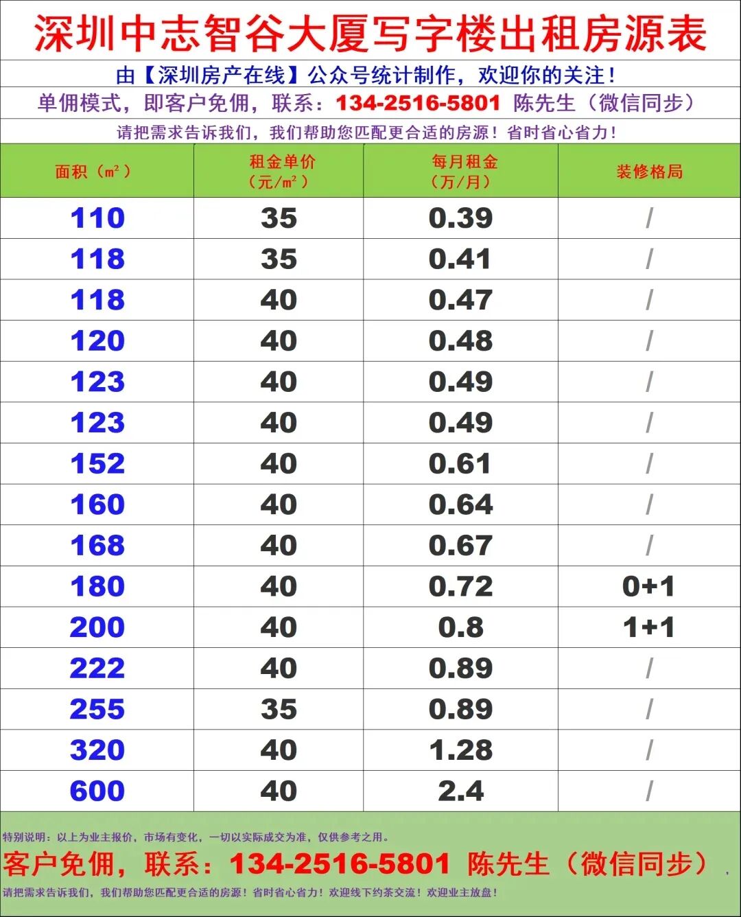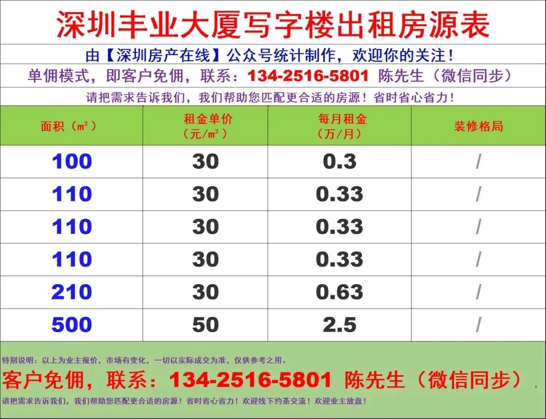 【深圳房产在线】陈经理写字楼租售团队:134-2516-5801 (微信同步)