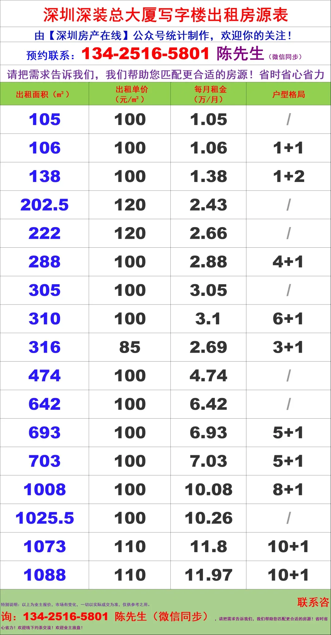 【深圳房产在线】陈经理写字楼租售团队:134-2516-5801 (微信同步)1对1VIP全程带看服务