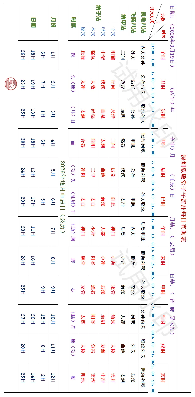 >深圳敦敏堂《子午流注:今日开穴》 2026 3月19日