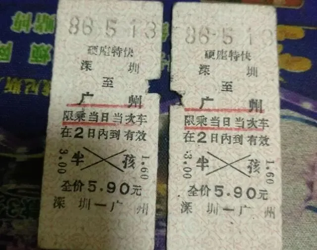 2.1986年5月13日,成都到深圳火车票5.90元。