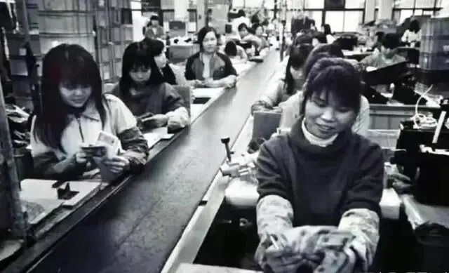 7.1986年,深圳,流水线上发工资景象。