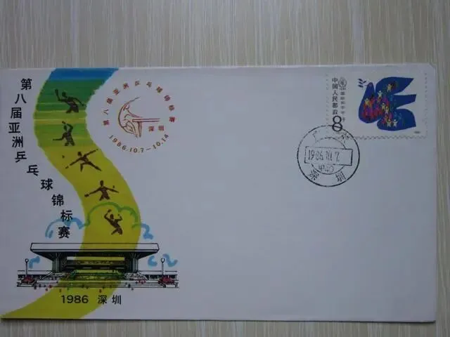 9.1986年,深圳,第八届亚洲乒乓球锦标赛纪念封。