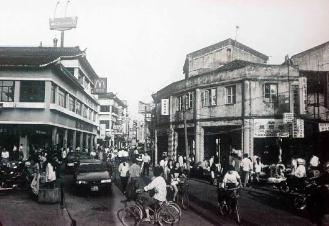 14.1986年,老街解放路充满南粤风情的老房子与首家落户中国的麦当劳快餐店。