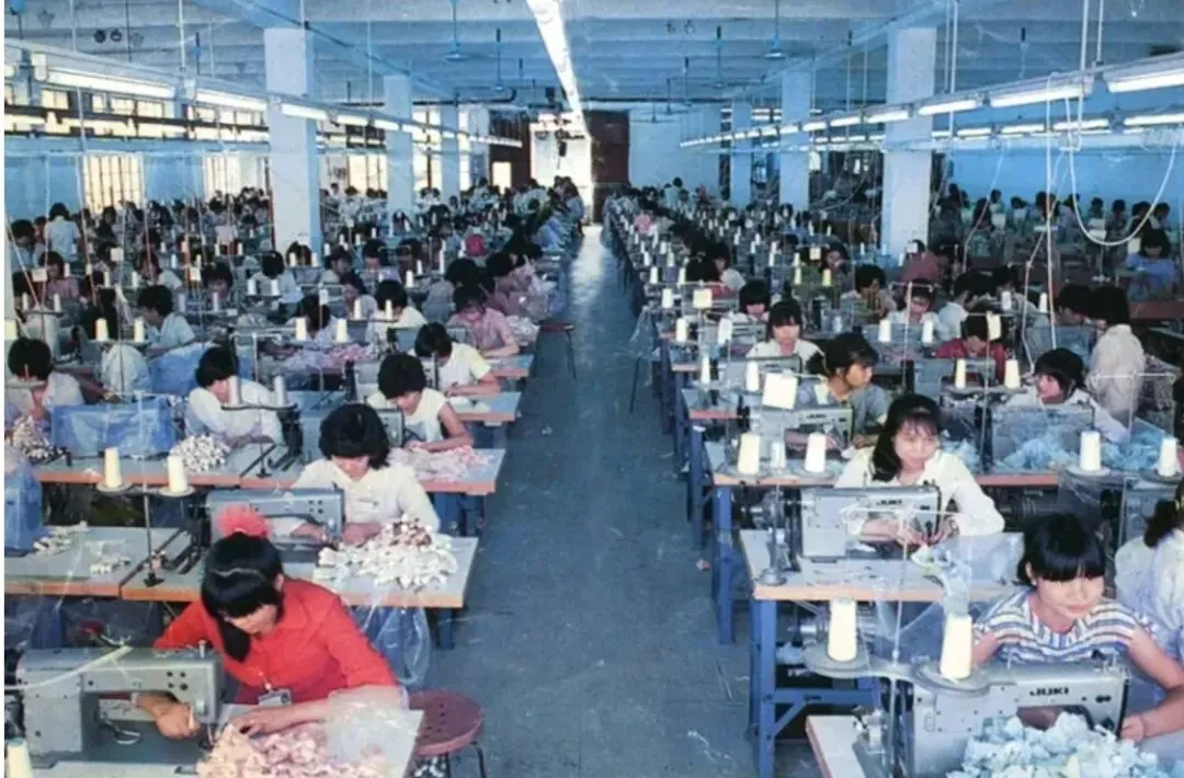 15.1986年,打工者在深圳蛇口工业区凯达玩具厂的流水线上工作。