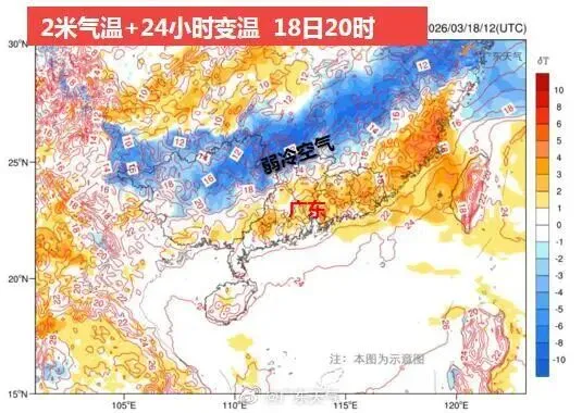据“广东天气”消息,预计3月18日夜间到3月19日,有弱冷空气伴随弱切变南下,但是基本止步于粤北,广东西北部气温小幅下降,其余大部气温总体维持或小幅波动。