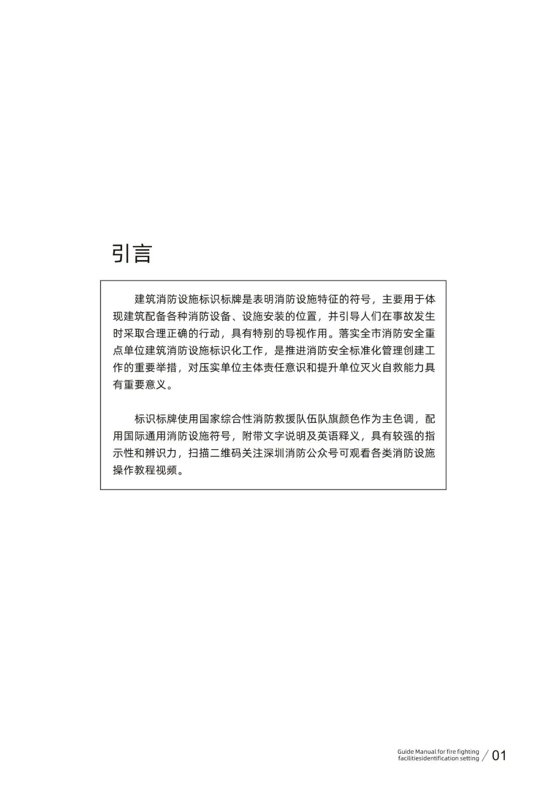 - 二维码联动: 扫描图册中的二维码,可关注“深圳消防”公众号观看各类消防设施的操作教程视频。