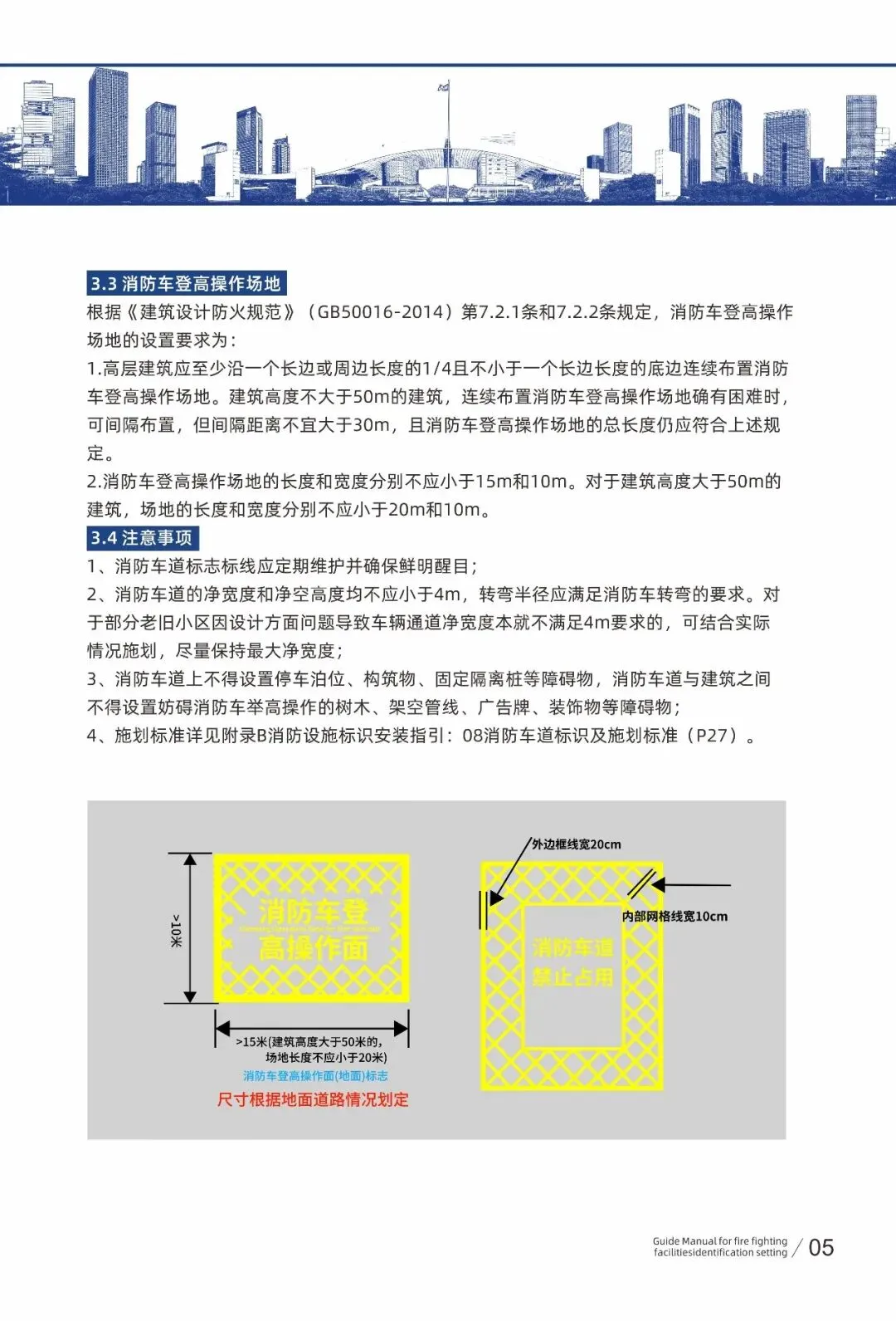 图册详细规定了消防车道的划线标准,这是很多物业最容易“踩雷”的地方。