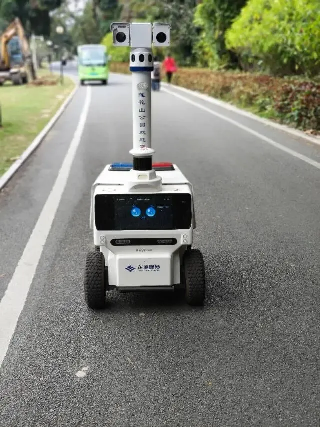机器人巡航,仿真人,脑袋灵活四处观望,每巡航完毕的方位,都要向指挥部报告“巡航完毕”,敬业尽责。