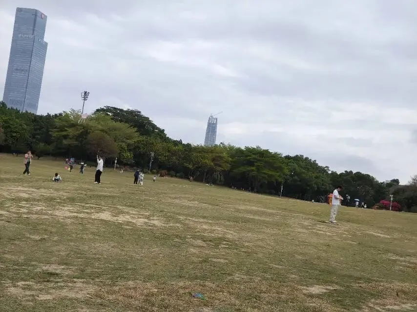 这里是风筝广场,大人和小孩在这里露营放风筝。