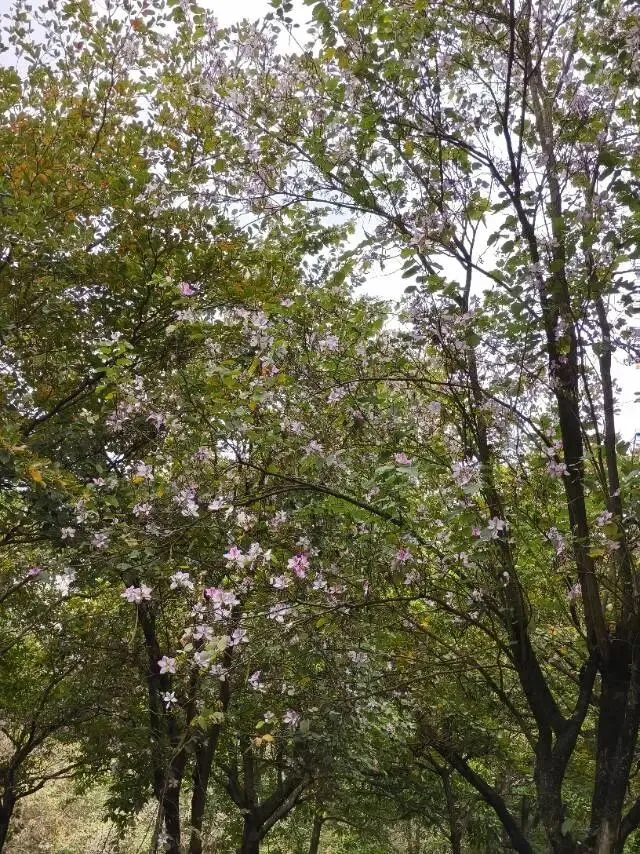 这一树花叫羊蹄甲,这种羊蹄甲也叫洋紫荆,但不是香港的紫荆花。那种红色的羊蹄甲是紫荆花。