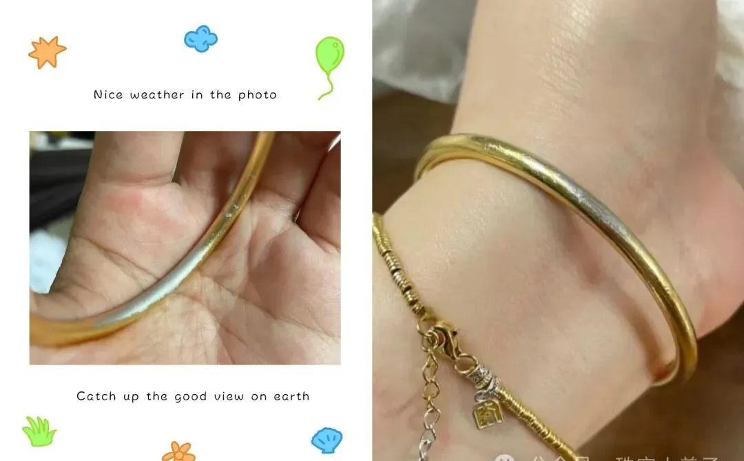 其实从今年金价飙上去以后 我身边朋友每次小聚都会讨论黄金水贝这些事 有人觉得买黄金就像买了份保险 随时能换钱 也有人说现在金价高高在上一克1000多都普遍了 还能买吗 有点后悔以前没出手了 买晚就亏得慌 但你看像小姐姐遇到这种手镯发白的事 说句实话 真遇上吧 多半先怀疑人生 怀疑自己理财方向是不是哪里出了误区 说到底咱还是老想着保值增值 不想自己花钱买情绪