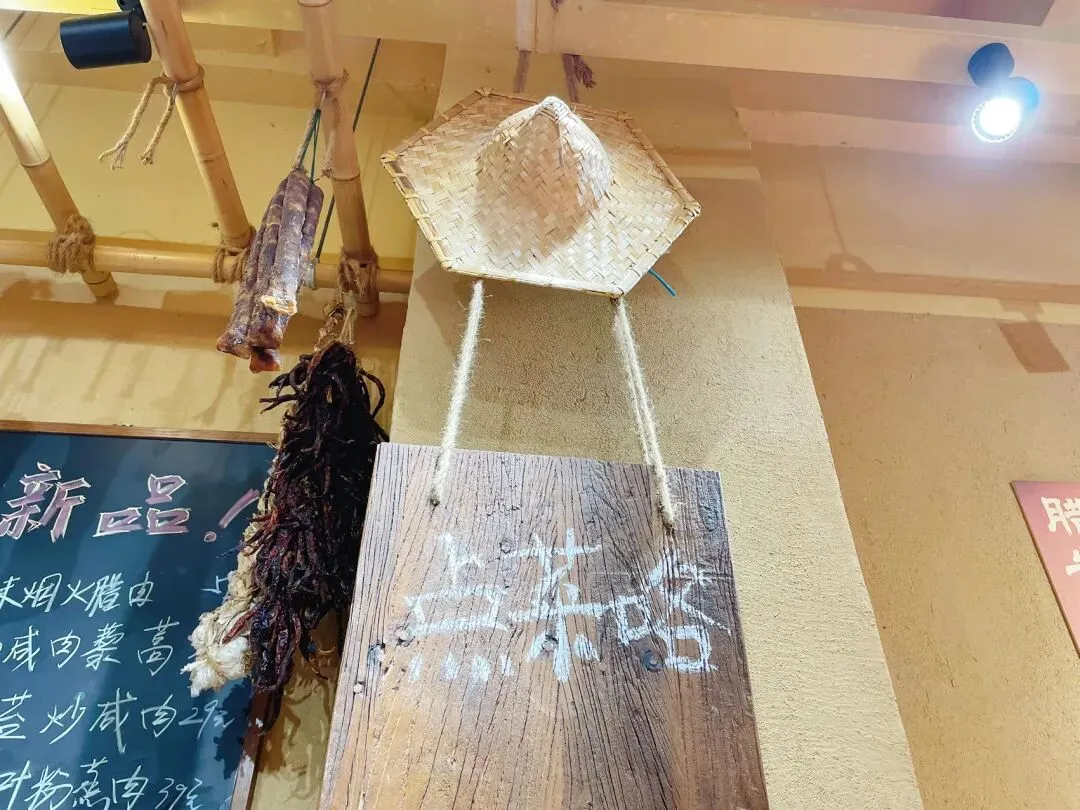 角落里挂着草帽和风干的腊肠,