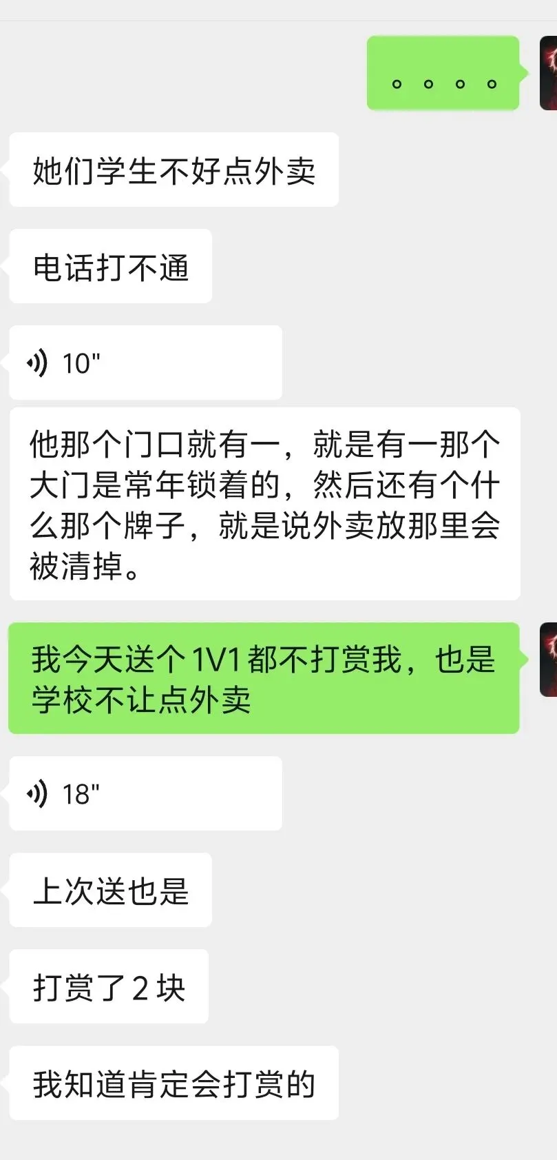 特别是学校、部分医院、特殊单位等外卖小哥进不去的地方,顾客不出来,最后往往就是“放在架子上自取”,甚至直接“退回商家”的结局。但是!深圳坪山一个外卖小哥的操作,直接把一位女学生整破防了。这事,还得从那单几块钱配送费的外卖说起。