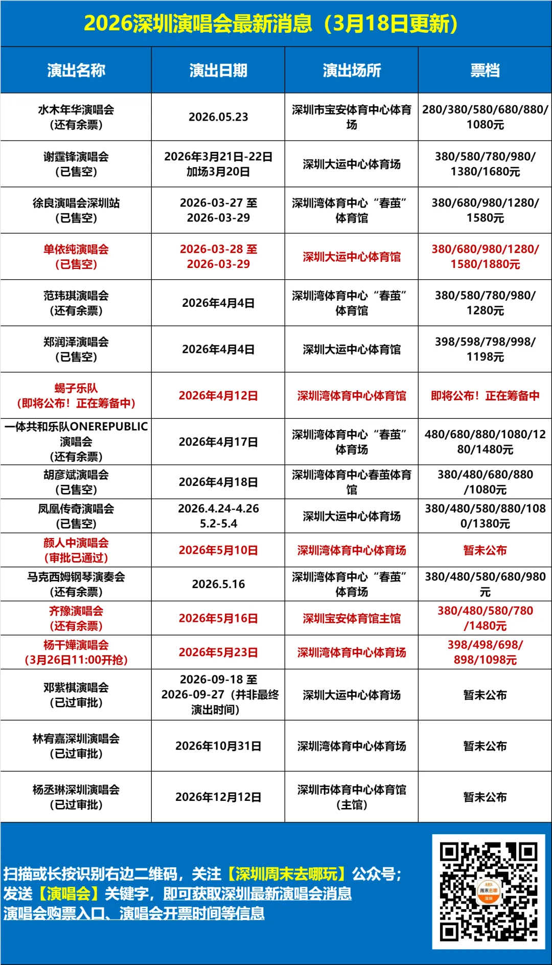 以及深圳3月即将开唱演唱会
