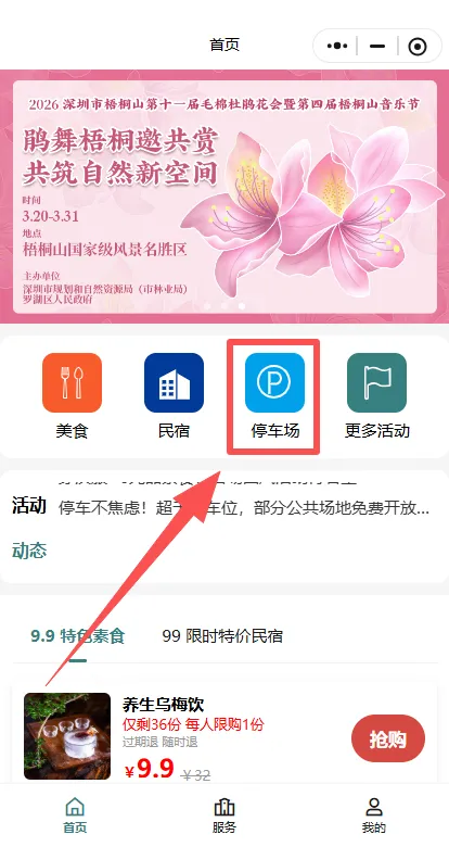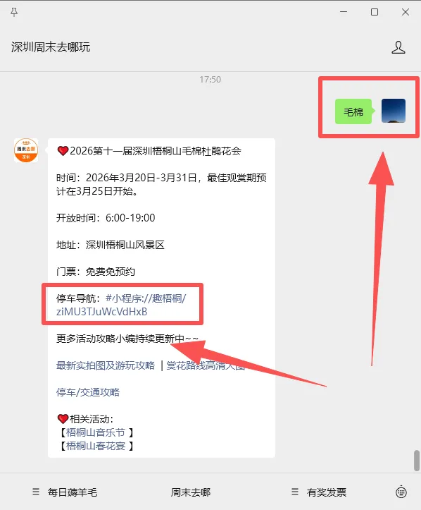 ✅推荐服务:扫描下方二维码前往【深圳周末去哪玩】公众号,回复【毛棉杜鹃】关键词,即可获取深圳梧桐山毛棉杜鹃花会停车场导航(停车场余位查询入口)、赏花登山路线推荐、毛棉杜鹃花会导赏图、登山口交通攻略、深圳梧桐山音乐节、梧桐山春花宴活动攻略