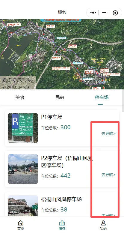 第二步:点击停车场,然后就可以查看到各个停车场的余位情况,以及导航