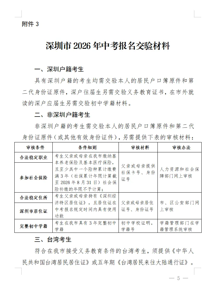 (三)具有我市初三学籍的非深户应届生,可在我市参加中考,并根据条件报读相应的高中阶段学校: