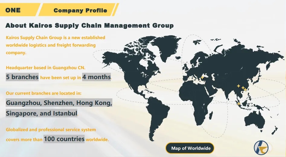 We was established in 2024 and is headquartered in Guangzhou. We provide services includes logistics and transportation services such as ocean freight, air freight, rail freight, road transportation, warehousing, customs declaration, and supply chain management services such as foreign trade and supply chain consulting. The main managers of Kairos Supply Chain Management (Shenzhen) Co., Ltd. Have all been deeply involved in the supply chain management industry for over 10 years, and have accumulated stable supplier relationships both domestically and internationally, and can provide customers with efficient, stable and customized supply chain services to every corner of the world.