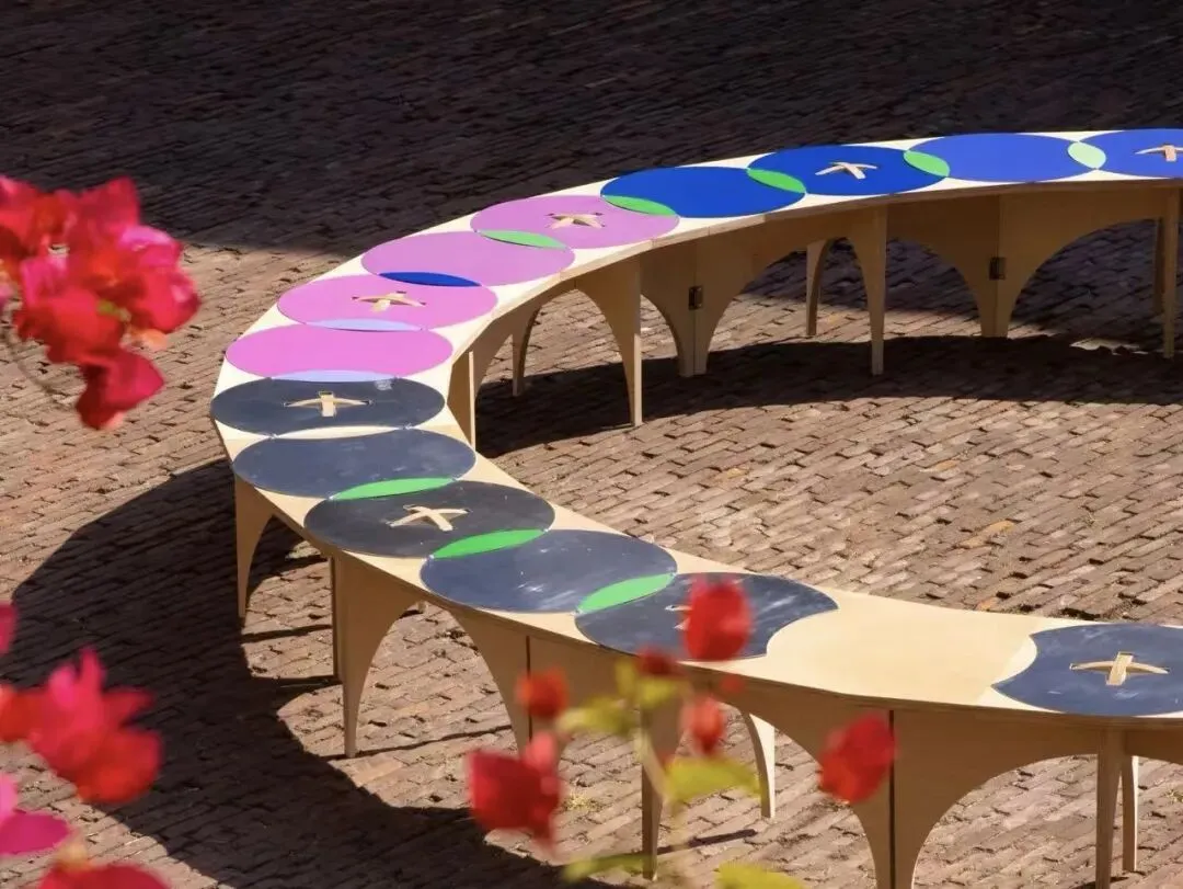公共艺术装置「转转塔」&「转转椅」由华侨城创意文化园(OCT-LOFT)与大星吉子工作室共同打造,「转转塔」以庆典蛋糕为形,邀请众人合力转动底盘,旋转的塔身即刻蔓延出流动的祝福。公共座椅系列「转转椅」由数个流线型圆椅与半弧椅组成,散落在OCT-LOFT的不同角落,在大众“走累时”、“等朋友时”与之自然发生互动,形成日常而缤纷的节庆氛围感。