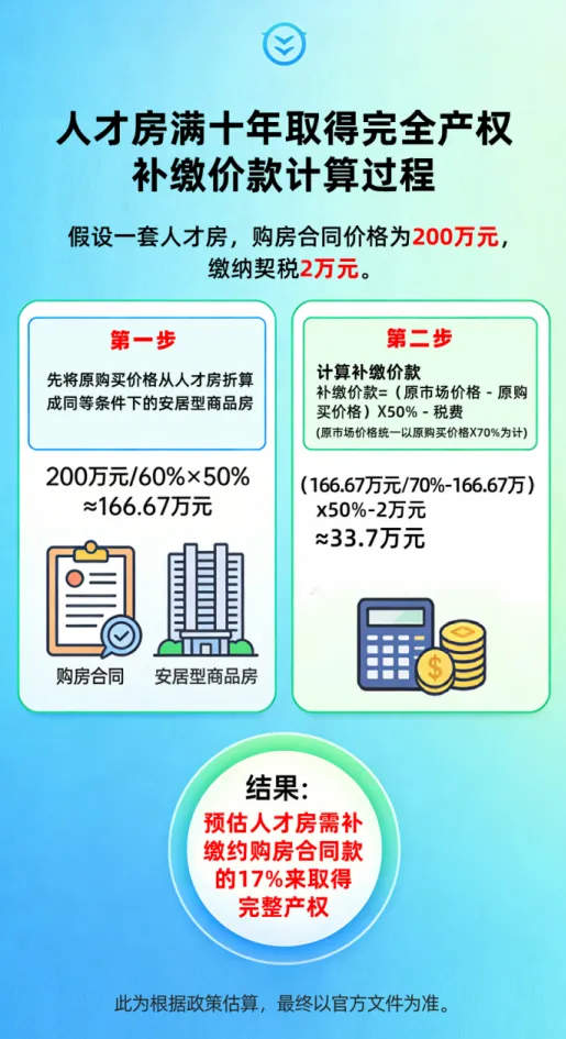 根据深圳最新规定,可售型人才房购房人签订买卖合同满 10 年后,可按明确公式补缴差价(估算为合同价的17%)取得完全产权,后续可自由交易、继承,彻底打通 “保障房到商品房” 的流转通道。此前出台的《深圳市安居型商品房产权管理有关事项处理办法》已明确补缴价款计算规则,购房人可通过全流程网办完成申请,流程便捷透明。