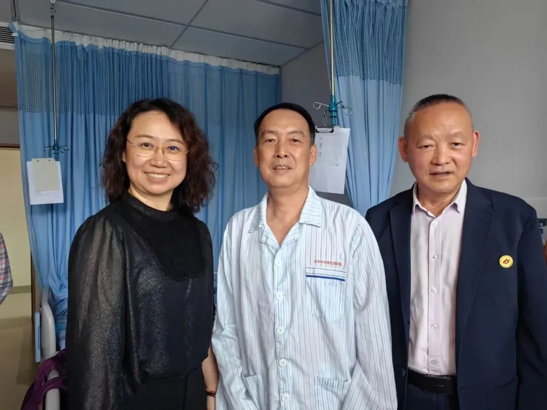 一份牵挂,一路同行;一份问候,满心暖意。上午十点,慰问团队准时抵达医院,大家脸上带着关切的笑容,步履轻柔地走进病房。此次慰问,刘代禄理事长精心筹备了慰问品——盛放的鲜花,承载着美好祝愿,愿病痛早日消散、安康如期而至;新鲜的果篮和牛奶,饱含着贴心关怀,愿他补充营养、早日康复;暖心的红包,凝聚着音乐中心的心意,愿这份暖意能为他驱散病痛的阴霾。