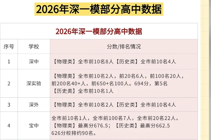 2. 在最新的深一模里面,我们发现深圳最强王者学校--易主了。
