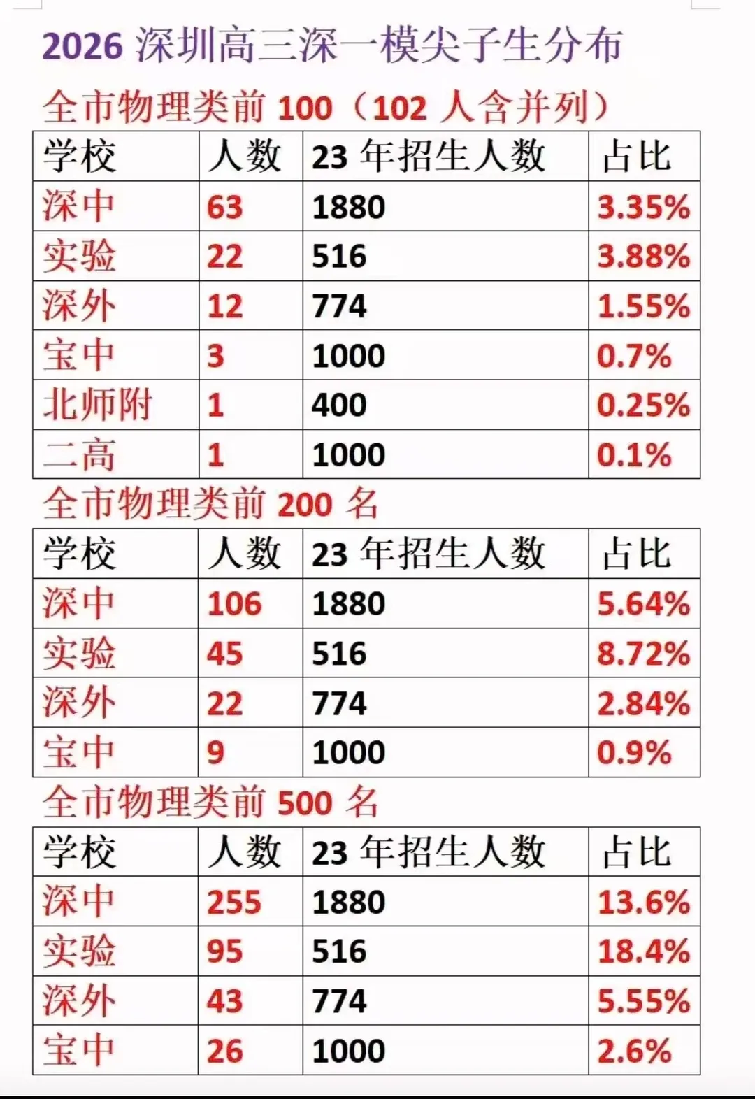 比例被深圳实验超越了。