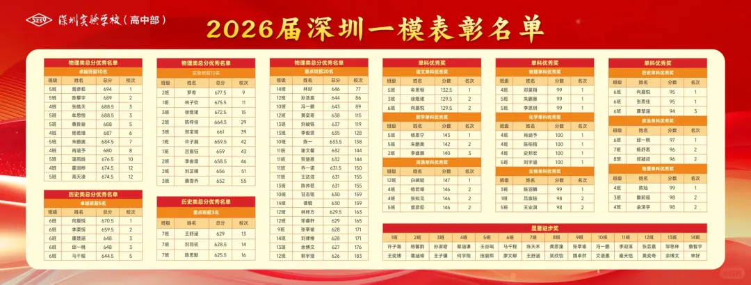 深中物理类前10名有8个,历史类全市有4个