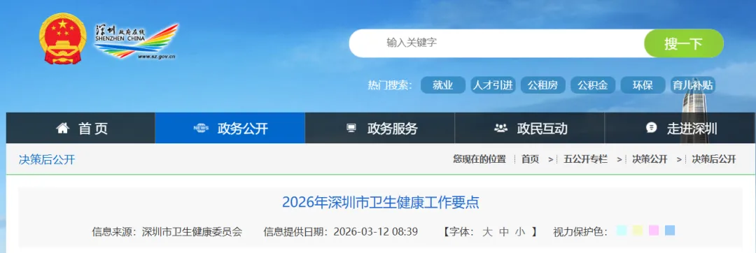 近日,深圳市卫生健康委印发《2026年深圳市卫生健康工作要点》(下称《工作要点》),提出持续深化医药卫生体制改革、加快推进医疗卫生高地建设、着力推动医教研产深度融合、推进全民健康数智化建设、提升医疗服务国际化水平、推进中医药传承创新发展、全面推进健康城市建设、促进人口高质量发展、筑牢公共卫生安全屏障、持续提升行业治理水平共十个方面,36项工作要点。
