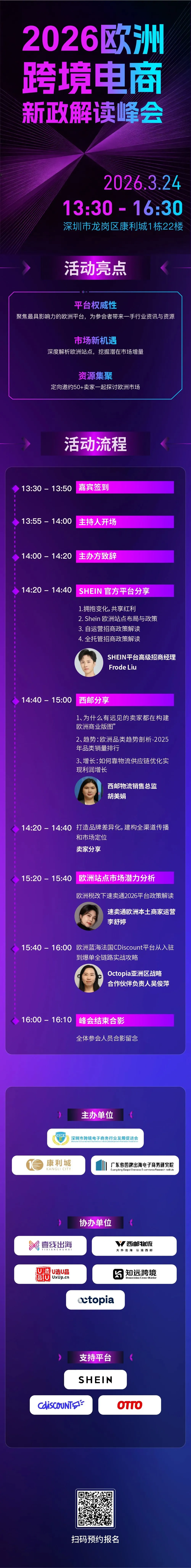欧洲税改落地、平台政策调整,2026年如何抓住新机遇?西邮物流联合 SHEIN、速卖通、Cdiscount 等平台官方经理,带来一场纯干货、强资源、高人脉的欧洲卖家峰会。