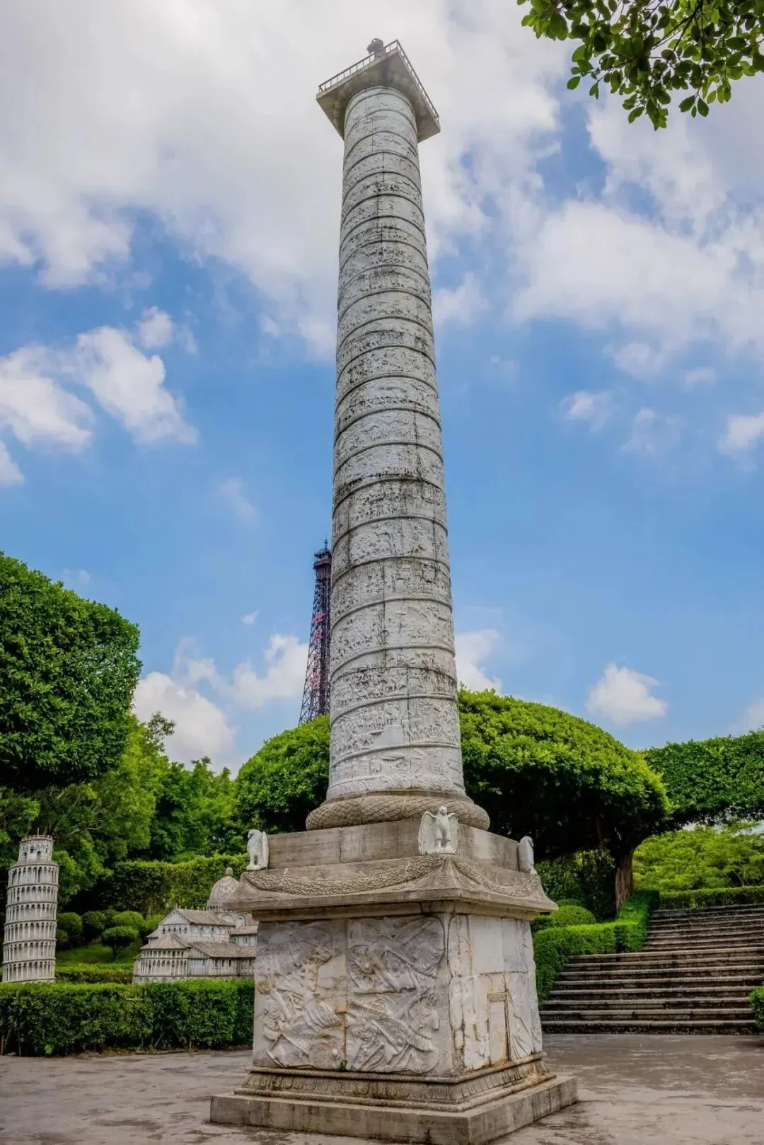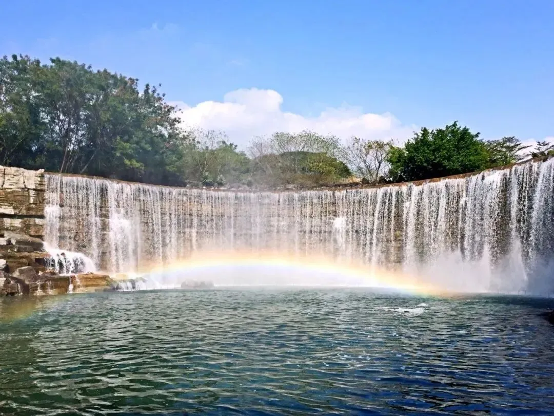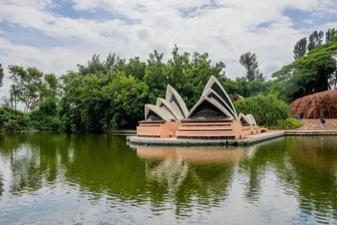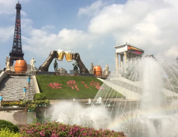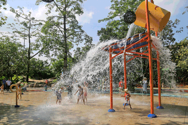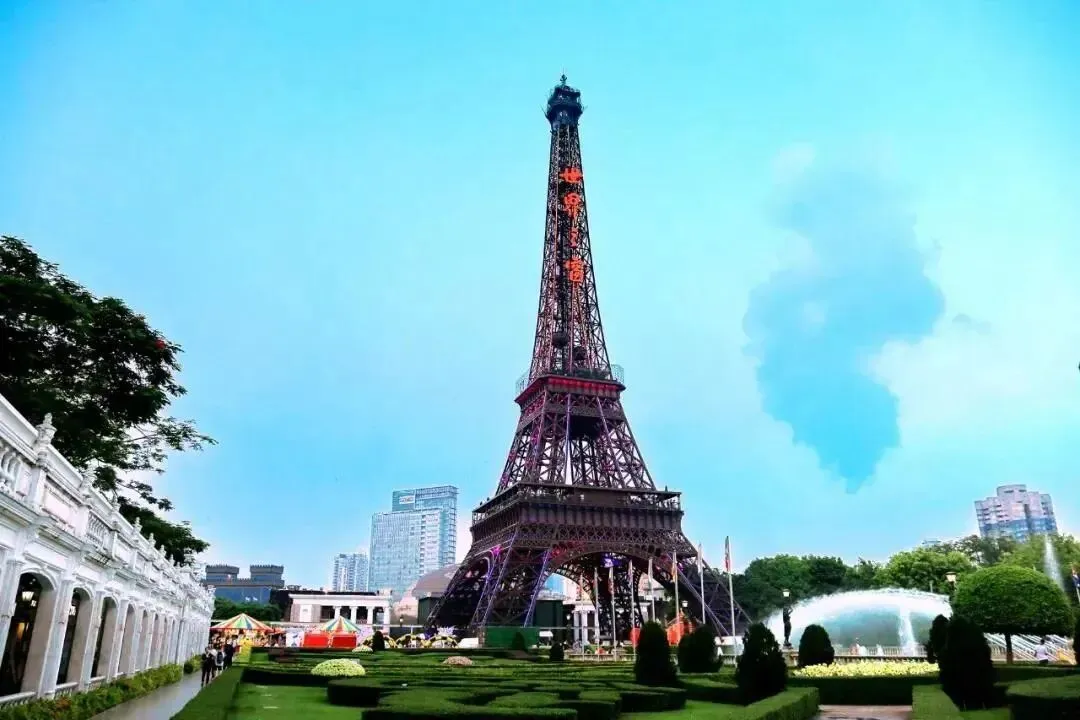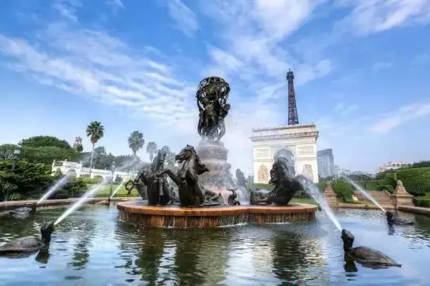 喷吐岩浆的夏威夷火山以及百米喷泉令游客叹为观止。作为景区活动中心的世界广场可容纳游客万余人正面有十尊世界著名雕塑广场四周耸立着108根不同风格的大石柱和近两千多平方米的浮雕墙还有象征世界古老文明发祥地的六座巨门一座华丽的舞台有世界各地的艺术家表演精彩的节目让游客在文化和艺术的氛围中尽情享受。在一片浓郁的荔枝园里,有五十多尊世界名雕,如有“约翰·施特劳斯纪念碑”、“掷铁饼者”、“阿波罗太阳神”、“思想者”等,形象生动,栩栩如生。