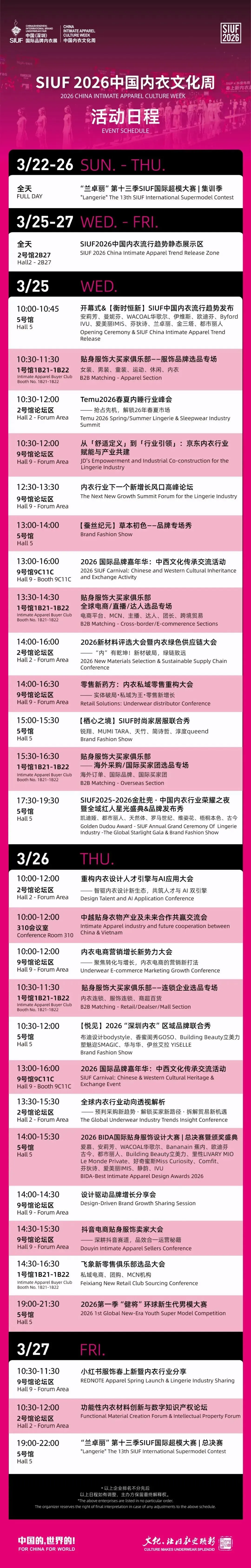 【3月25-27日】SIUF第21届深圳内衣展活动日程详细版