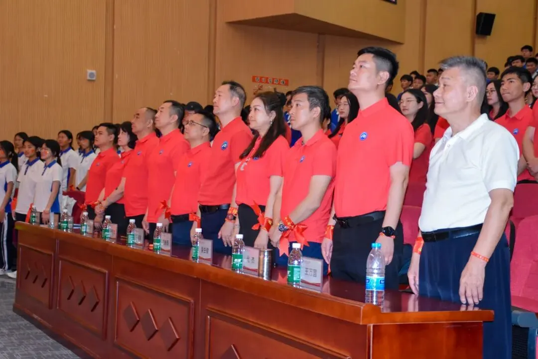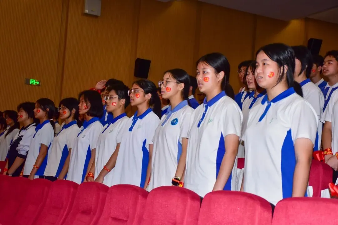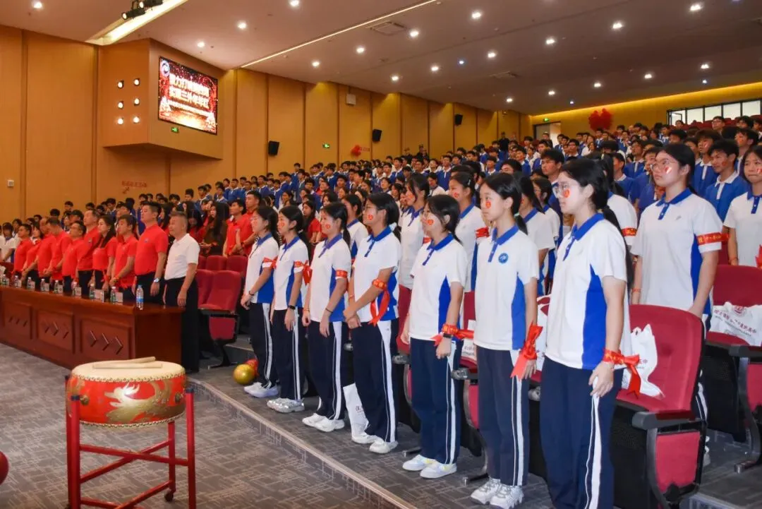 大会在雄壮的国歌声中开始。全体师生肃立,齐唱国歌,嘹亮的歌声响彻校园。这一刻,爱国之情与奋斗之志在心中激荡——中考不仅是个人成长的挑战,更是为梦想、为未来贡献力量的起点。爱祖国,立大志,成为同学们心中最深刻的共鸣。