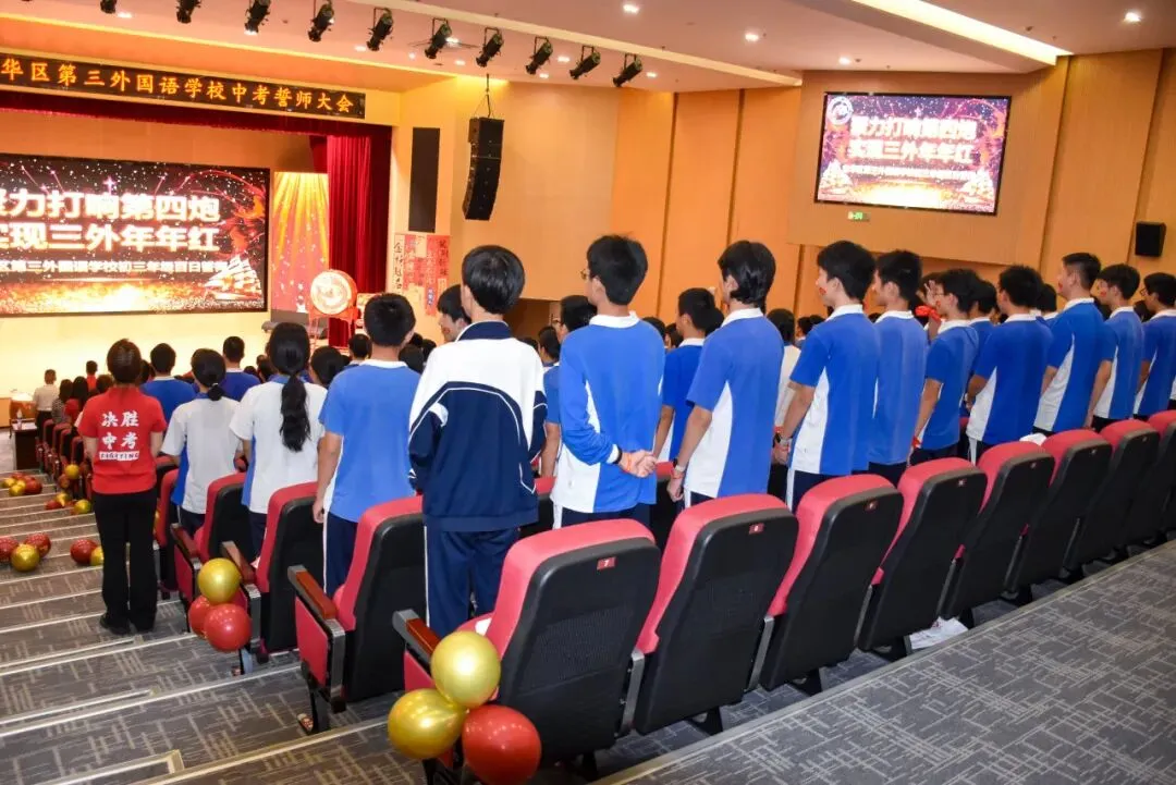 各班同学庄严宣誓,誓言铿锵有力、掷地有声,展现出三外学子迎战中考的坚定决心与昂扬斗志。