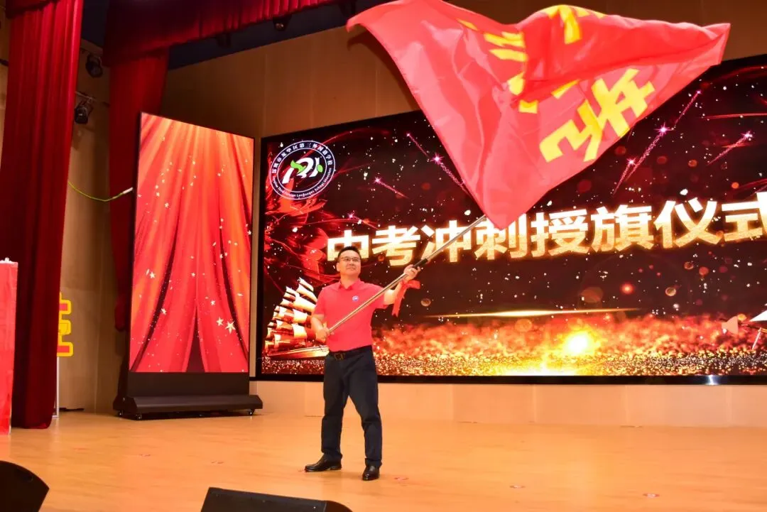 授旗仪式庄重举行,王伟锋书记将中考冲刺战旗郑重授予年级负责人“徐玉级长”,战旗猎猎、使命在肩,旗帜承载着希望与力量,激励全体师生奋勇向前、不负韶华。
