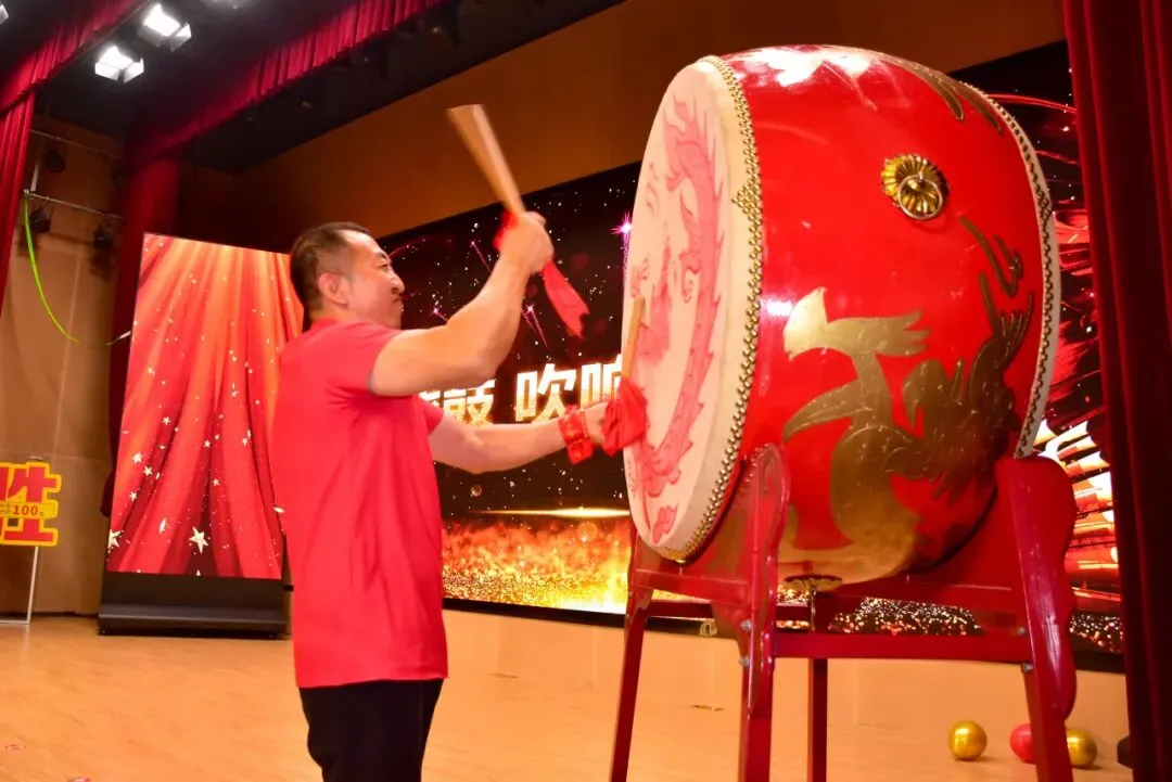 赵利宁副校长擂鼓鸣金,战鼓铿锵、号角吹响,激昂的鼓声正式吹响中考出征号角,全体学子意气风发、斗志昂扬,向着梦想全力冲刺。