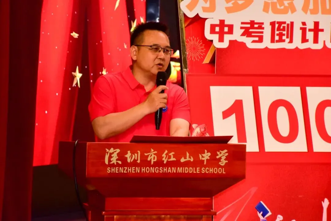 杜志奇老师代表全体九年级教师登台发言。他的话语温暖而有力,字字句句饱含着对学生的深情与期望:“同学们,三年来,我看着你们从懵懂少年成长为有志青年。这一路,有欢笑,有泪水,有挫折,更有成长。在最后的一百天里,老师们会一如既往地陪伴在你们身边。你们累了,我们是依靠;你们困了,我们是支撑;你们迷茫了,我们是灯塔;你们成功了,我们是最大的骄傲!”
