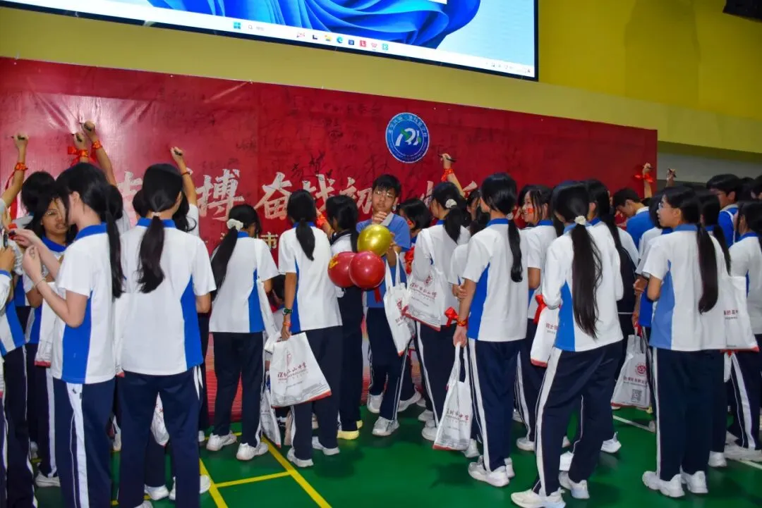 大会最后,同学们昂首跨越成功门,在签名墙上写下自己的名字,以笔墨明志、以誓言践行,以最好姿态奔赴中考、奔赴未来。
